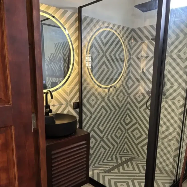 Eigen badkamer met wastafel, douche, warm water en toilet